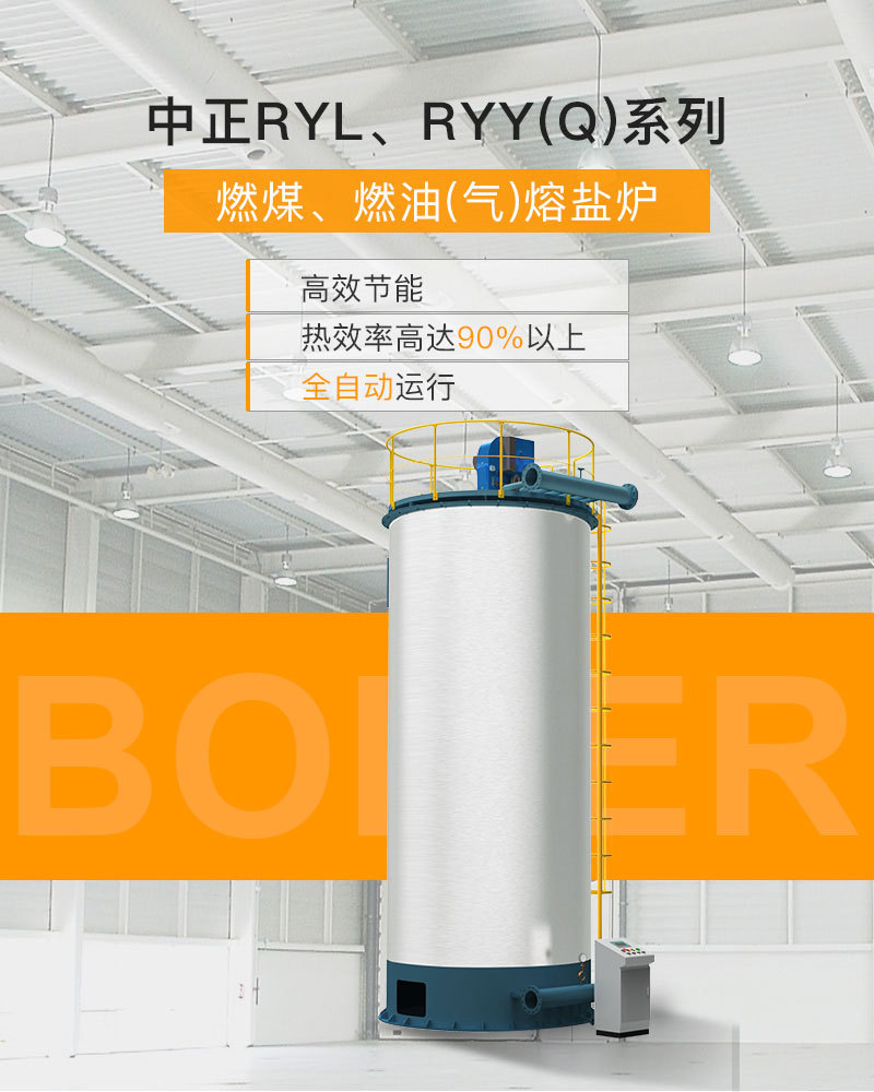 熔鹽爐是以熔化的硝酸鉀、亞硝酸鈉等的混合物為傳熱介質(zhì)的鍋爐。熔化爐將粉狀的熔鹽加熱到熔點(diǎn)以上,直到熔鹽的粘度可以用循環(huán)泵推動,使整個系統(tǒng)成為流動可循環(huán)狀態(tài)后,送到熱載體爐進(jìn)一步循環(huán)升溫,使其在流動狀態(tài)下循環(huán)使用。常用介質(zhì)工作溫度為400-550℃,最高工作溫度可達(dá)600℃。