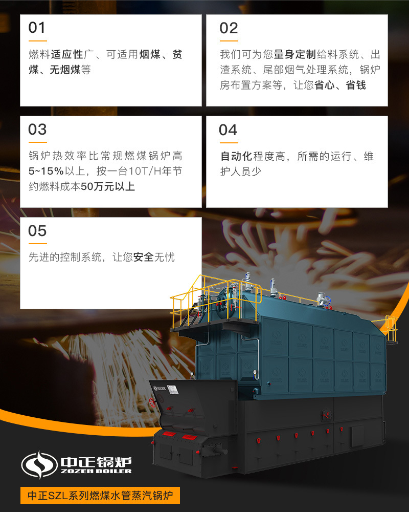 項目鍋爐配套:5臺SZS29-1.6/130/70-Q